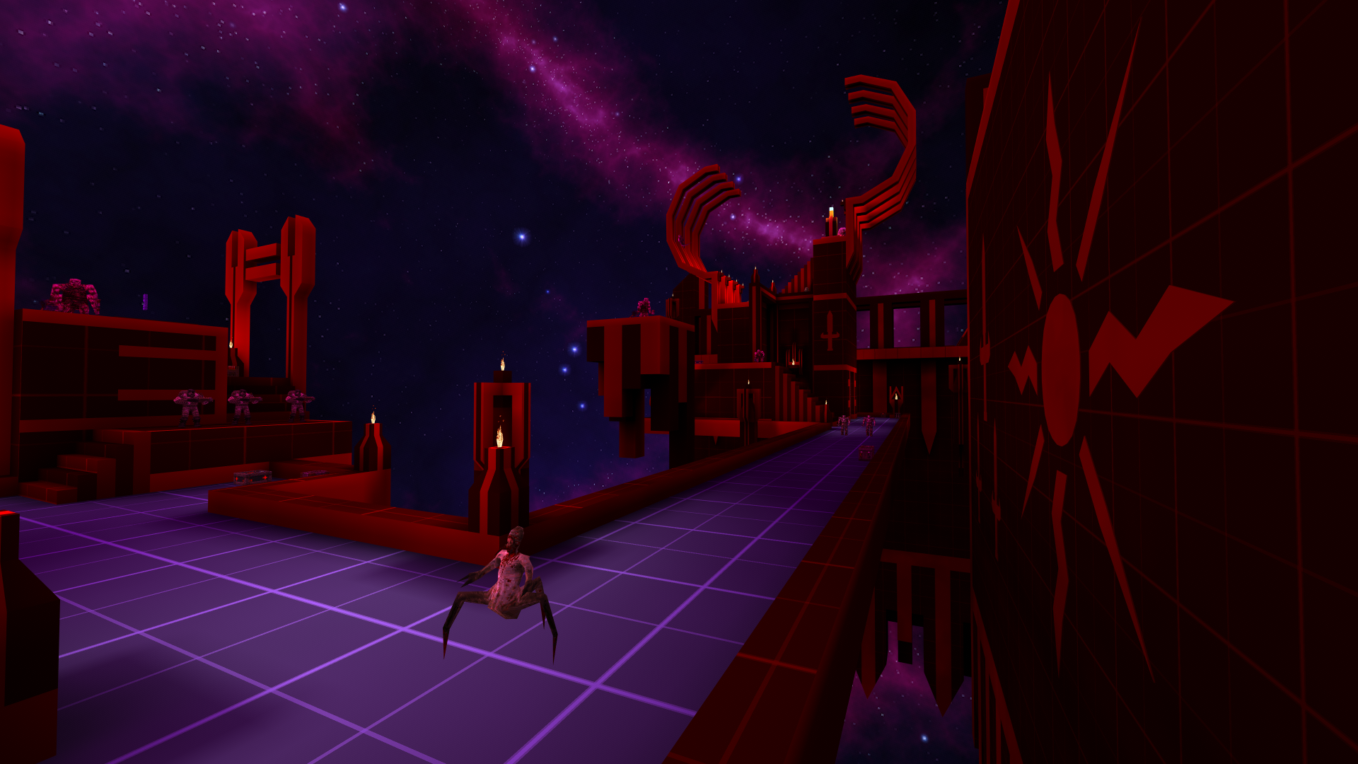 This is my entry from Meat Jam, a collaborative community project that I managed where several people came together and created meat-themed Quake maps. Open the console in game "~", type "game carrionstar", and then "map carrionstar"