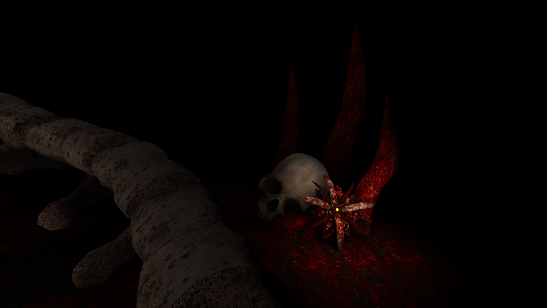 You wake within the ruins of a rotting moon wreathed in a landscape of withered flesh. The sky is dark, every star in existence swallowed into the blackness, and the only thing you can feel is the crushing loneliness of a dead universe.